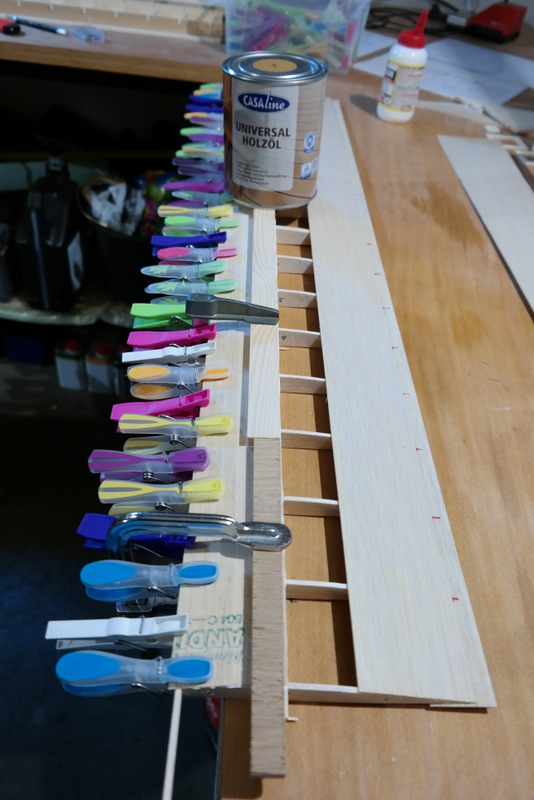 Am Sonntag den 30. Oktober 2016 hat Thomas den Rohbau dann weiter geführt. Als Erstes wurde die Tragfläche beplankt.
